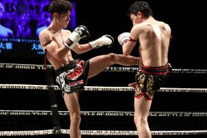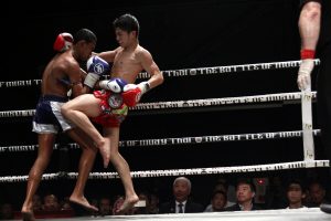 名高はタイでも活躍する17歳。相手のトゥアントーンも同い年だ。1R、名高はサウスポーに構え、トゥアントーンが右ミドルを打って来るが、名高はパワフルな左ミドル、左ローを当て続け、トゥアントーンの右の蹴りのタイミングで右フックを当ててダウンを奪取。その後も崩しを決め、膝蹴り、ローを当てつつ、左ストレートでダウンを重ねる。3ダウン目は奪えなかったが、点差を大きく広げることに。