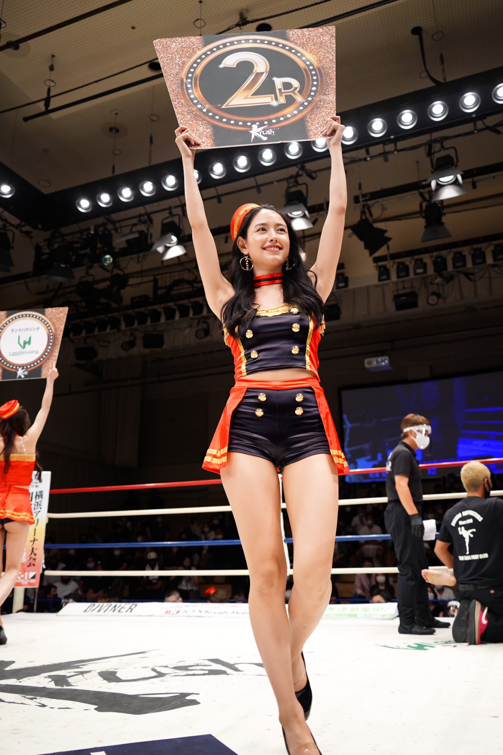 2Rは瓦田が色々なフェイントを絡めつつ、パンチ蹴りとも手数多く攻めるものの、強打自体は少なく、昇也もパンチやインローを時折返し、大差はつけさせない。記者採点イーブン。