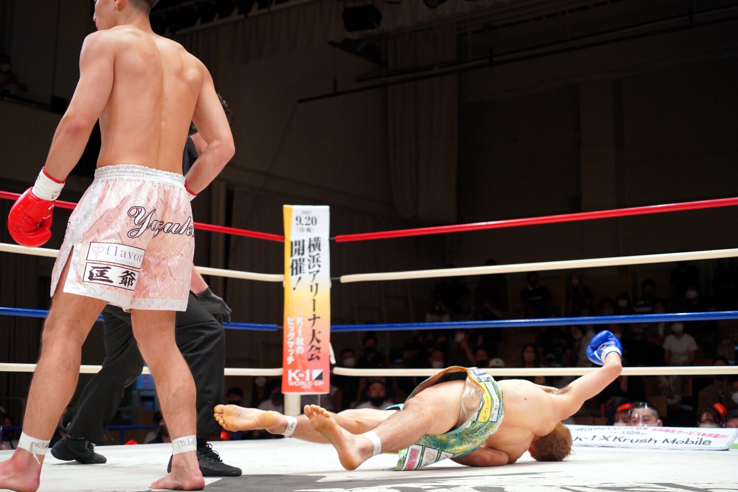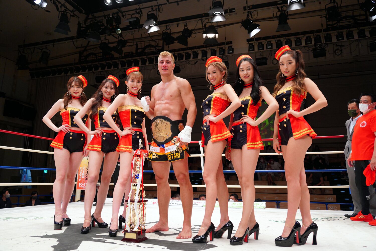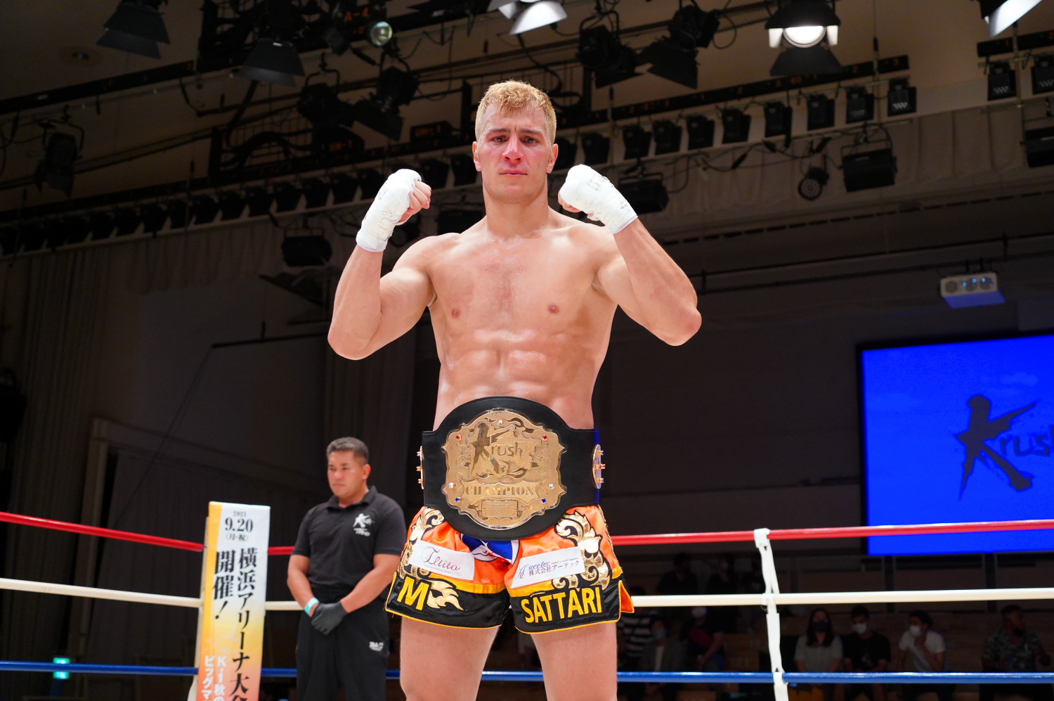 里見は「SNSとか記者会見とかで目立ったことしてる選手いますけど、俺はこのリングで目立ちます。計量オーバーとかありますけど、Krushのリングは甘くないんで。これから俺が引っ張ります。9月の準決勝、決勝、2回ともKOしてベルト巻きます」とアピールした。
