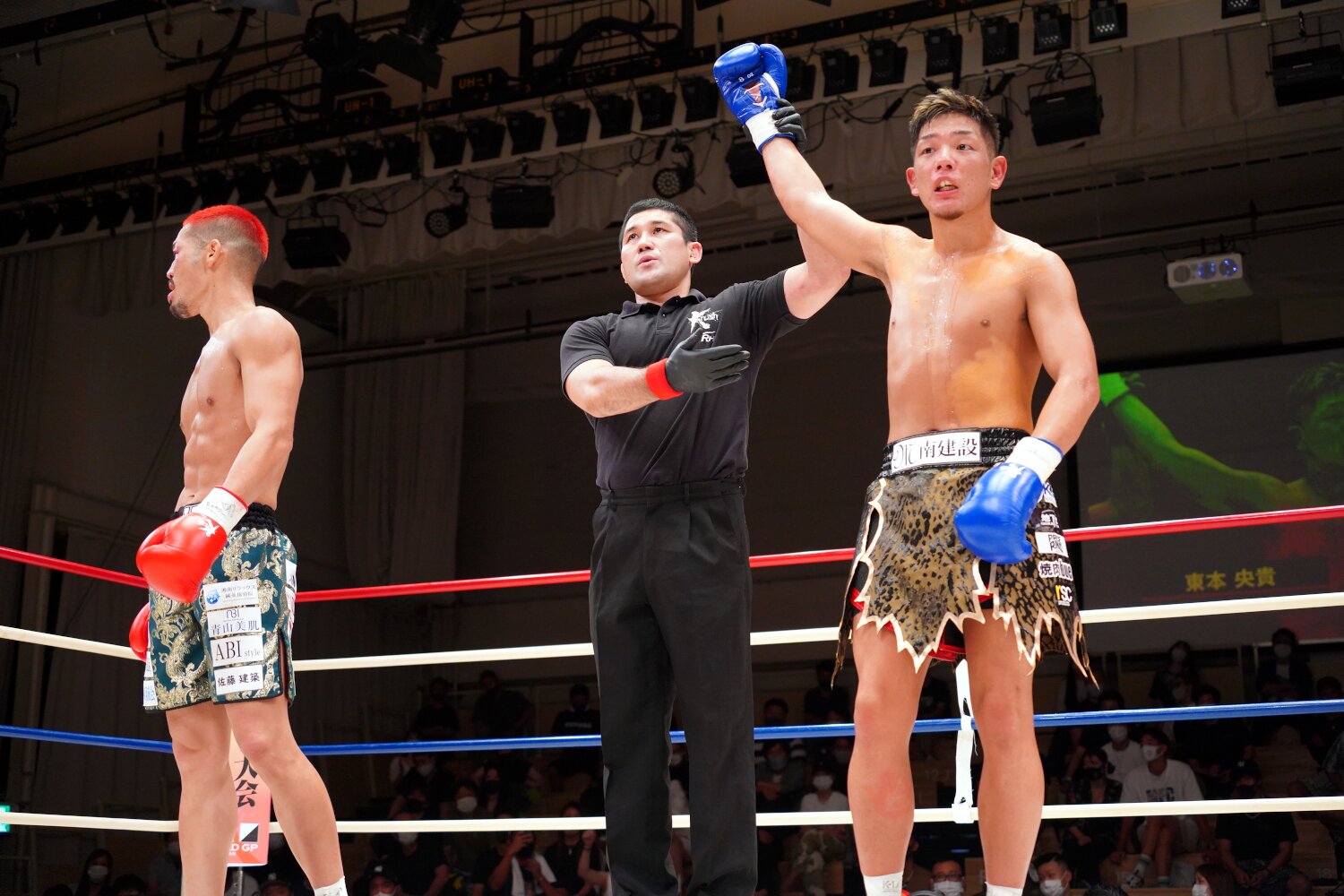 2Rも両者距離を取り続け、中盤に東本が左ストレート、弘輝が左のカーフキックを強打する場面があったものの、すぐ均衡状態に戻る。