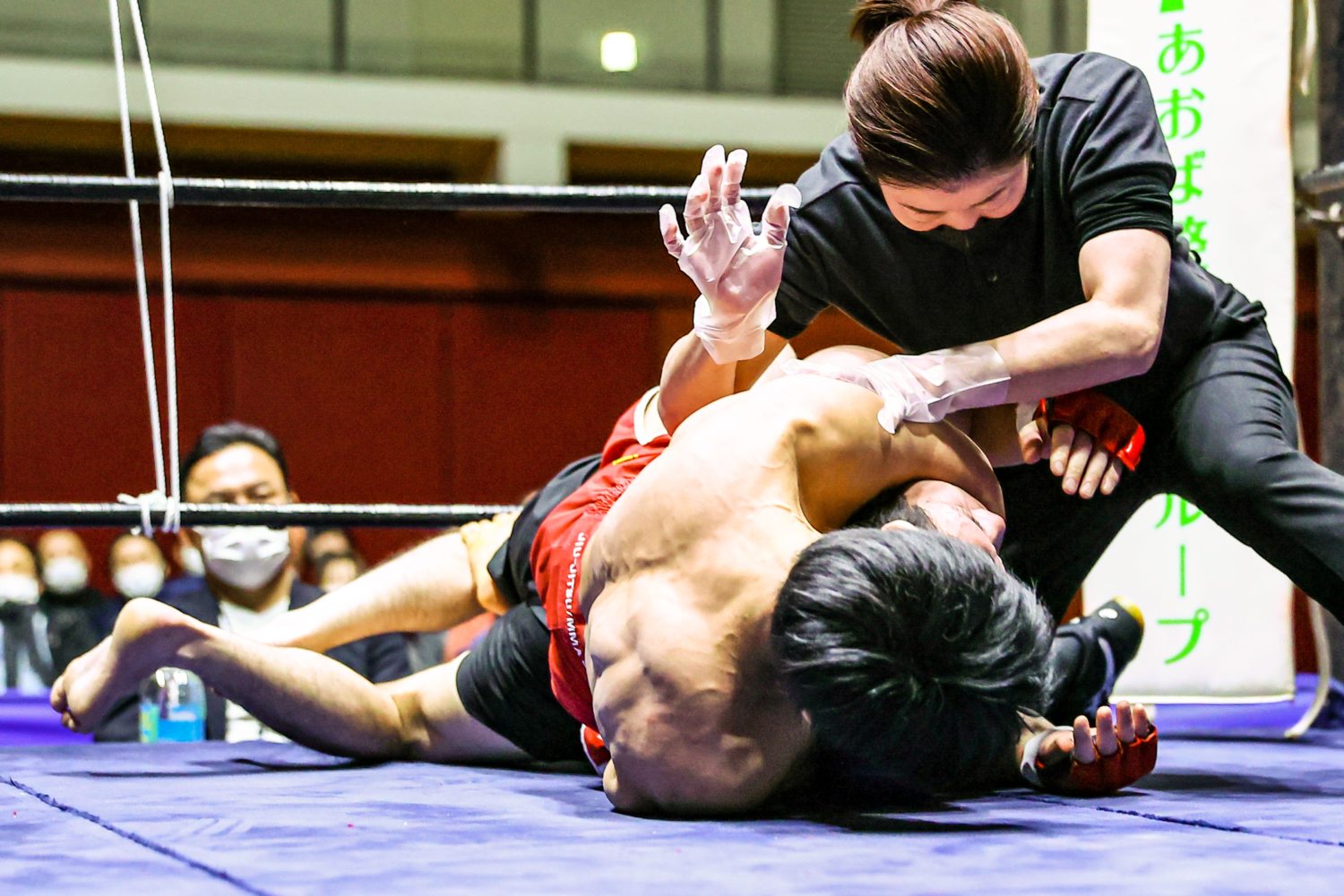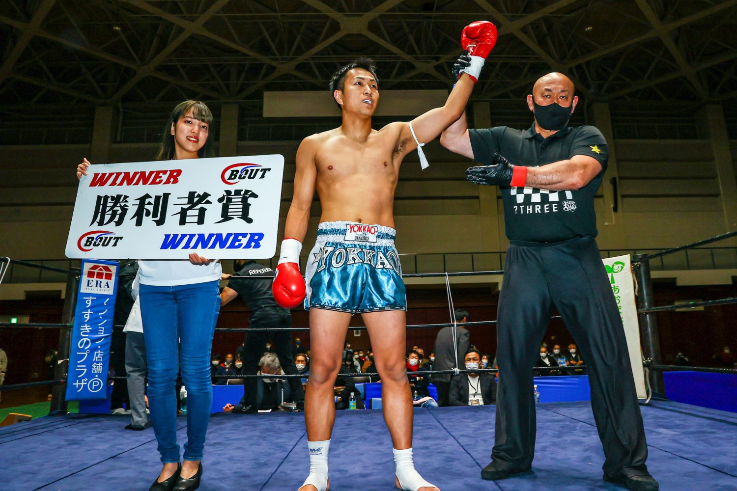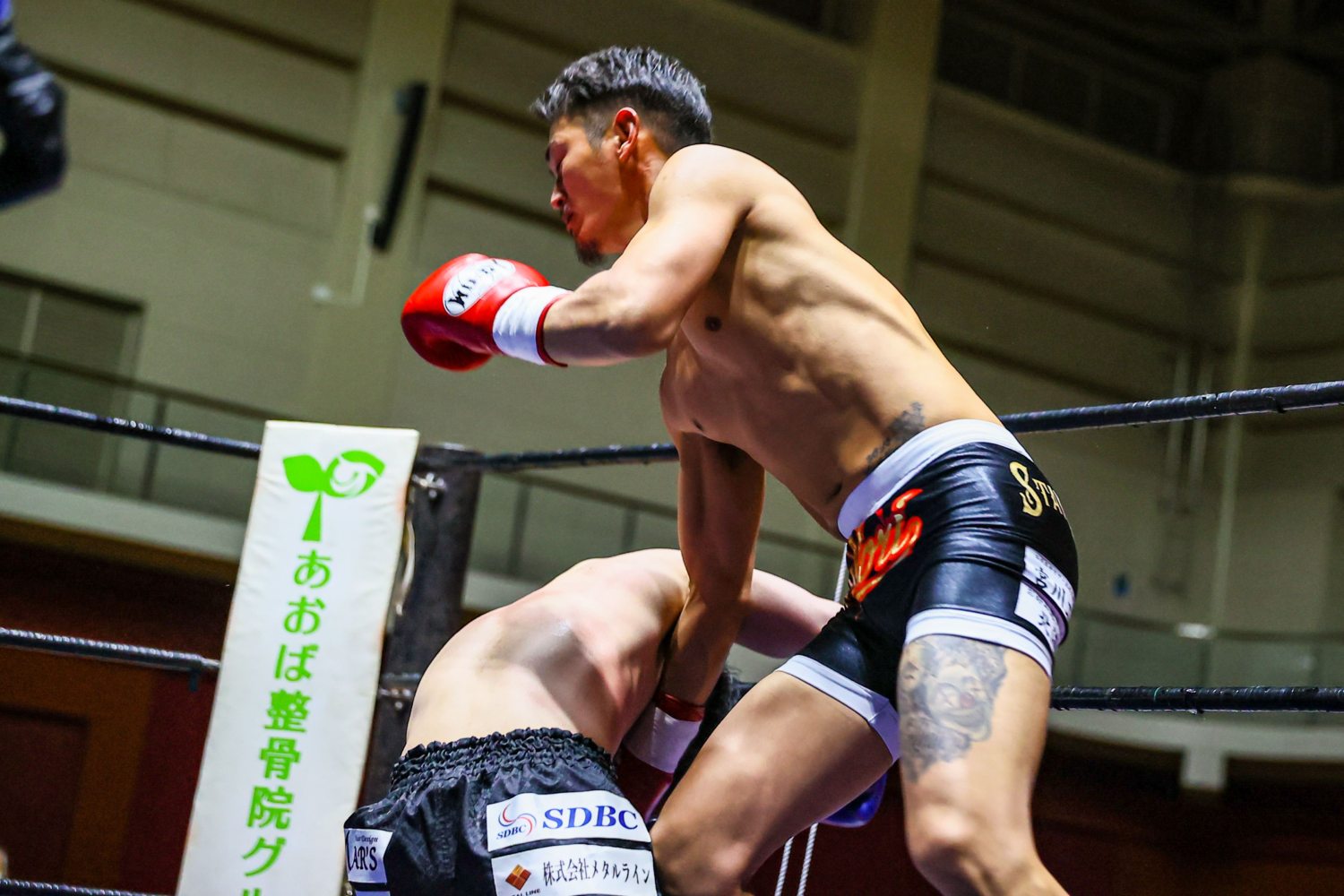 現在は札幌を拠点に指導者としての道を歩む野呂にとっては久々のリングとなったが、この日のためにきちんと追い込みもしてきたのだろう。1Rこそお互いムエタイのリズムで闘う場面が多かったものの、手数はワンツーを主体に積極的に前に出ていた野呂の方が上。2Rになると、左からの右フックで先制のダウンを奪う。立ち上がってきたソントンに対して、野呂は再び右を決め熱戦に終止符を打った。まだ34歳。もう一花咲かせてほしい気もするが…。