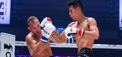 1Rから内藤は左ミドル、右ロー主体の攻めで主導権を握る。2Rもパンチ主体の谷口の攻撃に合わせて右ハイ、前蹴り。右ストレートをヒットさせる内藤が優勢を印象付ける。3Rも手数を減らさない内藤が蹴り、ミドル、さらに飛びヒザで追い込む場面も作り、フルマークの判定勝ち。