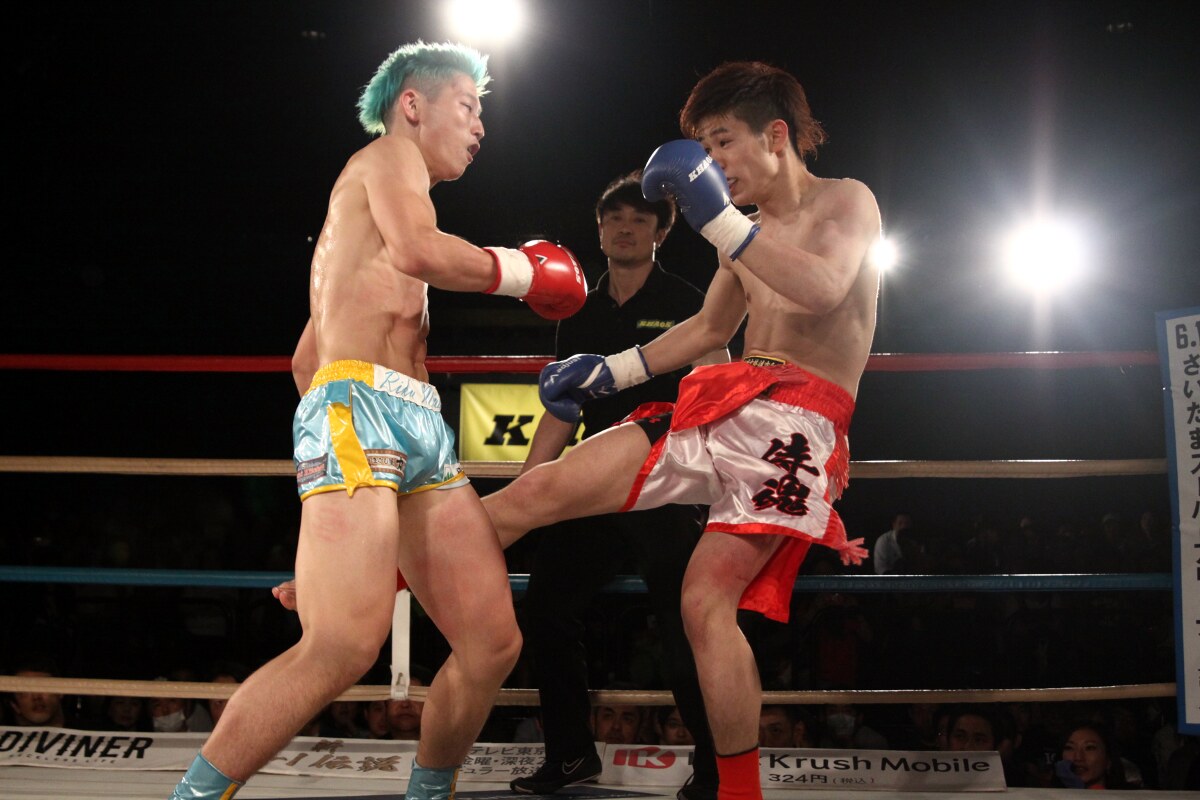 3R、林が右ローも絡めてパンチを当てていると、少しずつ黒田が失速。中盤以降、林がパンチの連打で追い詰める場面が目立つように。記者採点は10-9で林。計28-27で林。林がダブルダウンをきっかけに流れを変え判定勝ちした。