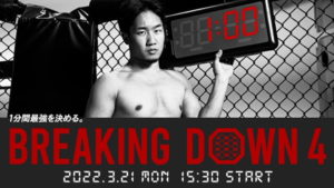 「1分1ラウンド」で最強を決める、最強で最高の総合格闘技エンターテインメントBreakingDown(ブレイキングダウン)は、第4回大会として『SHAREJEWELpresentsBreakingDown4』を2022年3月21日(月・祝)に開催しました。結果速報と選手のコメントをお知らせします。