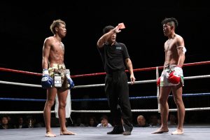 5Rも駿太が右ローを効かせ、首相撲でも膝を当て、終盤にはパンチも当て続け攻勢を維持。記者採点は4Rと5Rを駿太につけ50-48で駿太。ジャッジ3者が駿太を支持し、駿太の勝利となった。