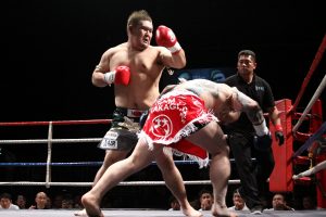 3Rも丹羽のミドル、膝を耐え、林が前に出続けて詰めて、度々左右のフックを強打し好印象を残し終了。林が文句無しの判定勝ちを果たした。