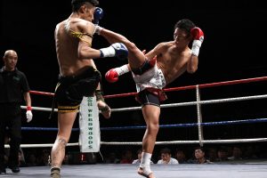 2R、その流れが続き、良星がパンチ、ロー、ミドル等を当て続けると、終盤には祐がローをもらった後にスリップする場面が増え、はっきりと差がつくように。