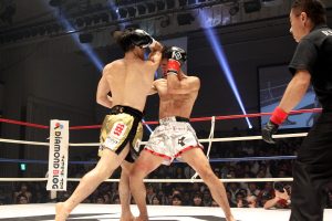 2Rも瑛作が左ミドル、ローを随所で当て続けるが、塁も瑛作の蹴りの打ち終わりを狙って右フックを強打し、スリリングな状況を作り続ける。とはいえ瑛作の蹴り数のほうが目立ち、ジャッジ3者も記者も瑛作につける。