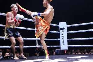 本戦はソンヒョンが左ボディ、右アッパーを当てるなど優位に試合を進めているように見えたが、3Rになると松倉のパンチもヒットし始めて延長戦へ。4Rはソンヒョンが組み膝も交えてボディを攻めて松倉が完全に失速。ソンヒョンが判定で勝利した。