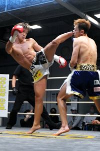 延長R、左ジャブ、右ローの柊真は柿をコーナーに詰めてパンチ連打で追い込む。柊真は飛びヒザ、左右フックと前に出続け、柿も意地を見せてパンチを返す。最後まで手数でペースを握った柊真が判定勝ちした。
