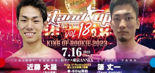 有井は昨年7月のCKCトーナメント決勝で寺山遼冴に延長戦の末に敗れ、昨年9月に京介に判定勝ちして以来の試合。その2か月後の大阪大会に出場予定だったが負傷欠場。その後、大阪から上京。久保優太や木村“フィリップ”ミノルらK-1勢への指導で知られる矢口哲雄トレーナーが新たにオープンしたARROWS GYMに移籍し、今回が初戦となる。彪司は4月の代々木大会で佐藤九里虎を1R KOし、今回からバンタム級に階級を上げる。