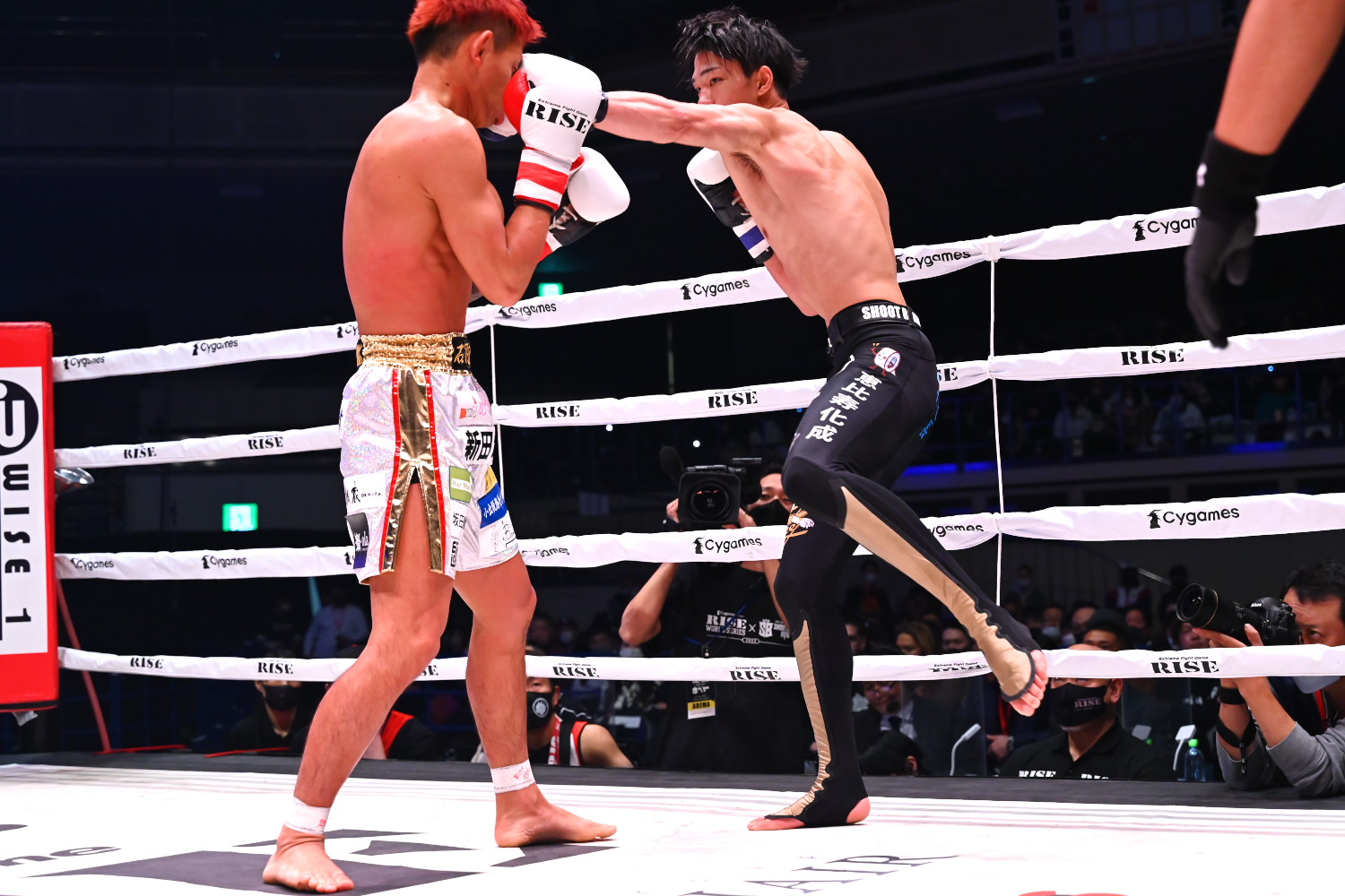 那須川天心の弟・龍心は16歳。今年春に高校生になり、4月のRISE代々木大会でのプロデビュー戦ではSBの笠原直希に判定勝ち。6月のTHE MATCHではK-1の大久保琉唯に判定負け。8月のRISE後楽園では平山龍馬に3R TKO勝ち、10月の大田大会では吉田亮汰朗に判定勝ちしプロ4戦3勝(1KO)1敗としている。対するKOUJIROはRISE初参戦の17歳で戦績5戦4勝(1KO)1敗。