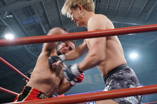 自身のキャリアで初のKO負けを喫した強敵へのリベンジマッチに意気込む市村は、ボクシング元世界王者を相手にパンチで挑み、テーパリットは時折タテ肘などを見せ、アグレッシブな攻防が続く。