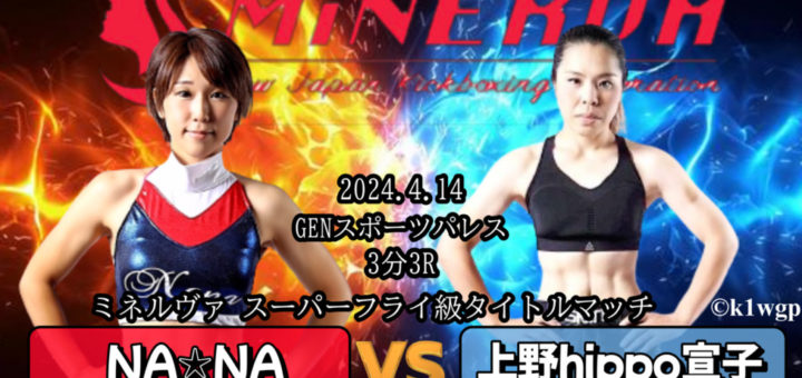 ニュース 2024-02-10 by BOUTREVIEW · Published 2024-02-10 ミネルヴァ 4.14 東京 GENスポーツパレス:全試合女子キック大会第2弾。NA☆NA×上野hippo宣子のスーパーフライ級王座決定戦がメイン