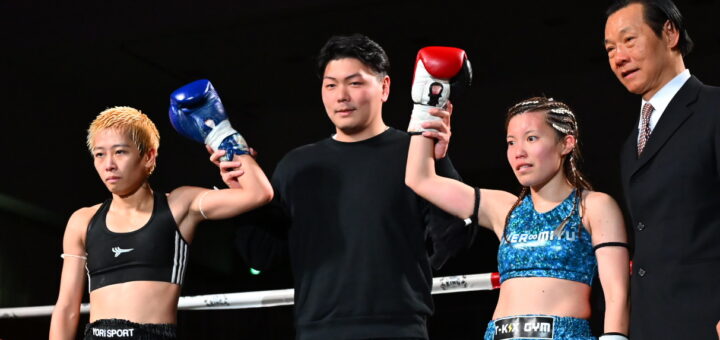 試合結果 2024-04-17 by BOUTREVIEW · Published 2024-04-17 ミネルヴァ 4.14 GENスポーツパレス(結果):NA☆NA、上野hippo宣子に判定勝ちも計量オーバーでスーパーフライ級王者に認定されず。Nao、青木繭、斎藤千種ら勝利