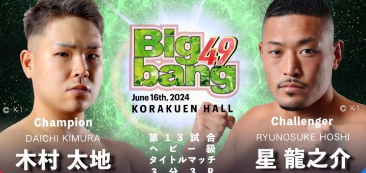 ニュース 2024-04-17 by BOUTREVIEW · Published 2024-04-17 · Last modified 2024-06-15 Bigbang 6.16 後楽園ホール:ヘビー級 木村太地×星龍之介、スーパーライト級 琢磨×ポッシブルKの2階級タイトルマッチ。65.5kg契約で山際和希×昇也。宮﨑勇樹×田中聡でフェザー級王座挑戦者決定戦