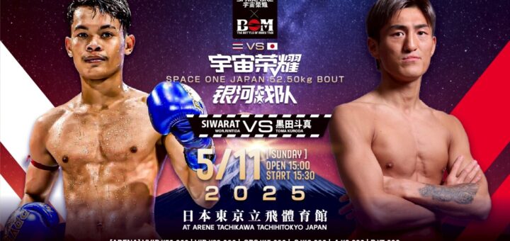 ニュース 2025-04-23 by BOUTREVIEW · Published 2025-04-23 SPACE ONE×BOM 5.11 アリーナ立川立飛:黒田斗真、奥脇竜哉と昨年9月戦ったシワラットとキックルール戦