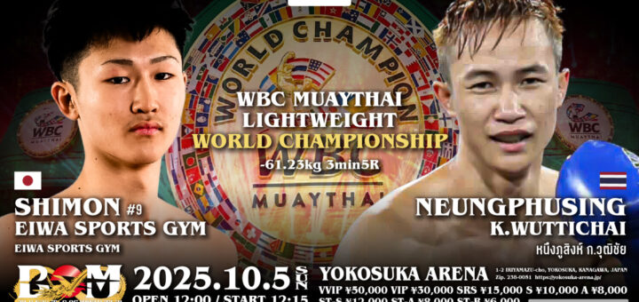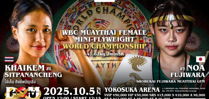 ニュース 2025-09-10 by BOUTREVIEW · Published 2025-09-10 BOM 10.15 横須賀アリーナ:11連勝中の士門・エイワスポーツジム、WBCムエタイ世界ライト級王座に挑戦。MIKE JOEと喜多村誠、初代BOM OFGミドル級王座懸け3度目の対戦