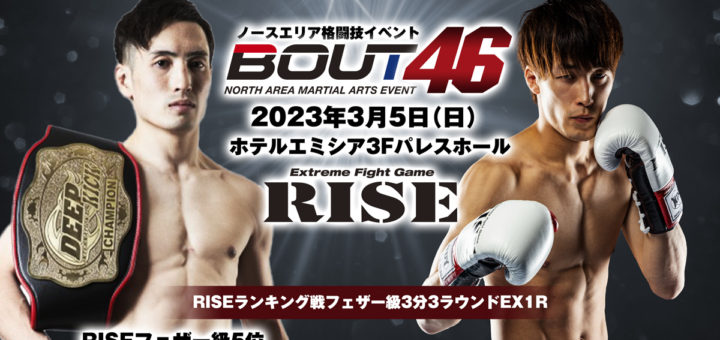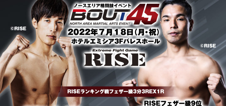 ニュース 2023-02-22 by BOUTREVIEW · Published 2023-02-22 BOUT 3.5 ホテルエミシア札幌:地元の山川賢誠×DEEP☆KICK王者 宮崎就斗でRISEフェザー級ランキング戦。愛翔×嶋田将典でRISE OFGマッチ