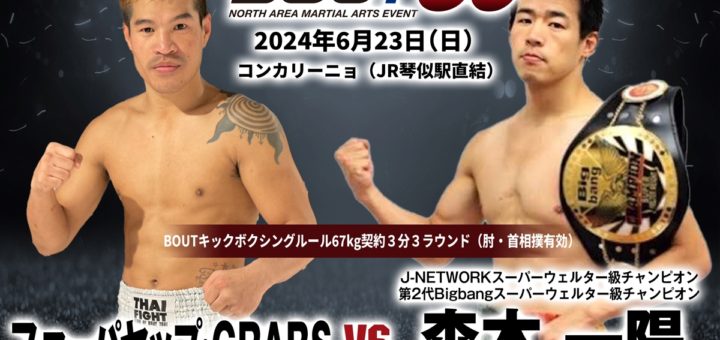 ニュース 2024-06-20 by BOUTREVIEW · Published 2024-06-20 BOUT 6.23 札幌コンカリーニョ:森本一陽、肘有りルールで地元タイ人のファーパヤップ・GRABSと対戦