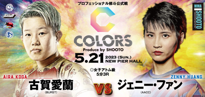 Push / 試合結果 2023-05-21 by BOUTREVIEW · Published 2023-05-21 · Last modified 2023-07-12 修斗 5.21 ニューピアホール(レポ):新女子大会COLORS旗揚げ。AACCの「ニュースター」渡辺彩華、SARAMIを2R KOし第3代女子スーパーアトム級王者に