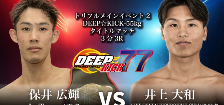 ニュース 2026-01-29 by BOUTREVIEW · Published 2026-01-29 DEEP☆KICK 3.8 テクスピア大阪:保井広輝×井上大和の-55kgタイトルマッチほか追加。3階級王座戦に