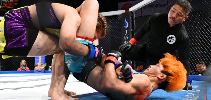 試合結果 2024-12-23 by BOUTREVIEW · Published 2024-12-23 DEEP 12.20 梅田ステラホール(昼/レポ):須田萌里、上瀬あかりに2R一本勝ち「そろそろベルトが欲しい」。鹿志村仁之介、RYUKIに1R一本勝ち。飴山聖也、松場貴志を29秒で粉砕。竹内龍吾、5秒TKO勝ちしDEEP最短タイ記録