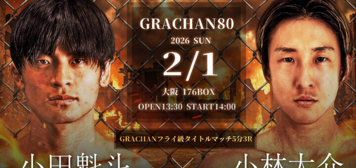 ニュース 2025-12-24 by BOUTREVIEW · Published 2025-12-24 GRACHAN 2.1 大阪 176BOX:小田魁斗、小林大介とフライ級王座防衛戦。松本光史×丸山数馬ほか決定