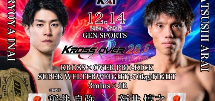 ニュース 2024-12-03 by BOUTREVIEW · Published 2024-12-03 KROSS×OVER 12.14 GENスポーツパレス:DEEP☆KICK -70kg王者・稲井良弥が初参戦し新井惇之と対戦