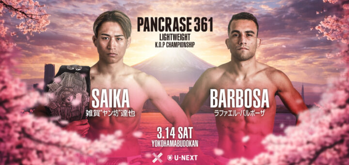 Push / ニュース 2026-01-28 by BOUTREVIEW · Published 2026-01-28 パンクラス 3.14 横浜武道館:RIZIN大晦日KO勝ちの雑賀“ヤン坊”達也、2連続一本勝ちのバルボーザと3度目の防衛戦。杉山しずか、女子フライ級王座奪還目指しプロ2連勝の和田綾音と対戦。ストロー級は船田電池×宮澤雄大で王者決定戦