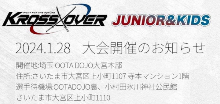 トピックス 2024-01-06 by BOUTREVIEW · Published 2024-01-06 · Last modified 2024-01-14 出場者募集 KROSS×OVER ジュニア&キッズファイト MMA・グラップリング・キック 1.28 OOTA DOJO大宮【PR】