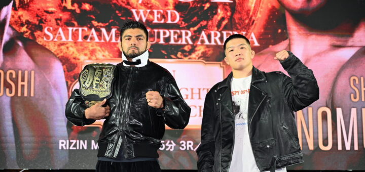 Push / ニュース 2025-12-18 by BOUTREVIEW · Published 2025-12-18 · Last modified 2025-12-19 RIZIN 12.31 さいたま:野村駿太欠場。ホベルト・サトシ・ソウザのライト級王座にイルホム・ノジモフが挑戦。ベイノアは雑賀“ヤン坊”達也と対戦。新居すぐるの相手は未定