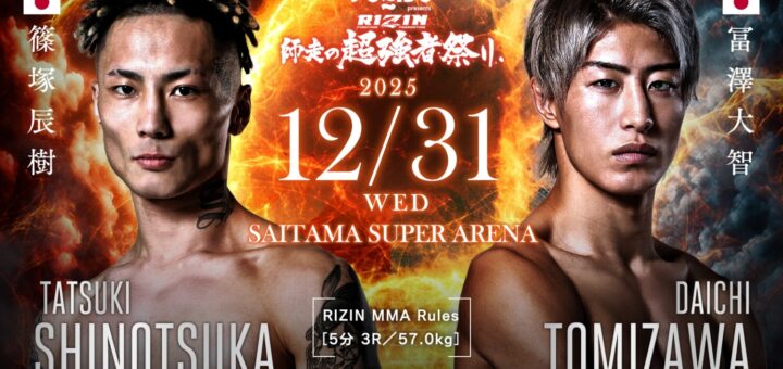 ニュース 2025-11-20 by BOUTREVIEW · Published 2025-11-20 · Last modified 2025-11-21 RIZIN 12.31 さいたま:篠塚辰樹、MMA 2戦目は平本丈に勝った冨澤大智と。芦澤竜誠、BreakingDownで人気のジョリーと対戦