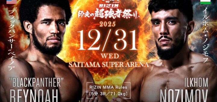 Push / ニュース 2025-12-10 by BOUTREVIEW · Published 2025-12-10 · Last modified 2025-12-11 RIZIN 12.31 さいたま:イルホム・ノジモフ、1階級上のライト級で米国AKA修行帰りの“ブラックパンサー”ベイノアと対戦