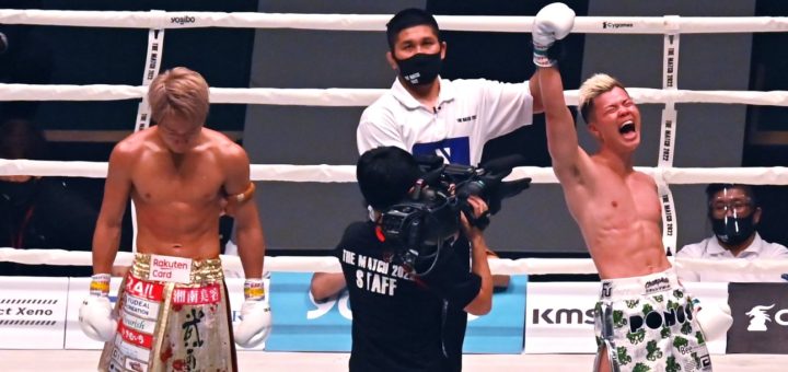 Push / 試合結果 2022-06-19 by BOUTREVIEW · Published 2022-06-19 · Last modified 2022-09-09 THE MATCH 6.19 東京ドーム(レポ:前半戦):55kg上位対決はRISE鈴木真彦、K-1玖村将史が勝利。和島大海、ベイノアから3ダウン奪い判定勝ち。サッタリ、1R KO勝ち