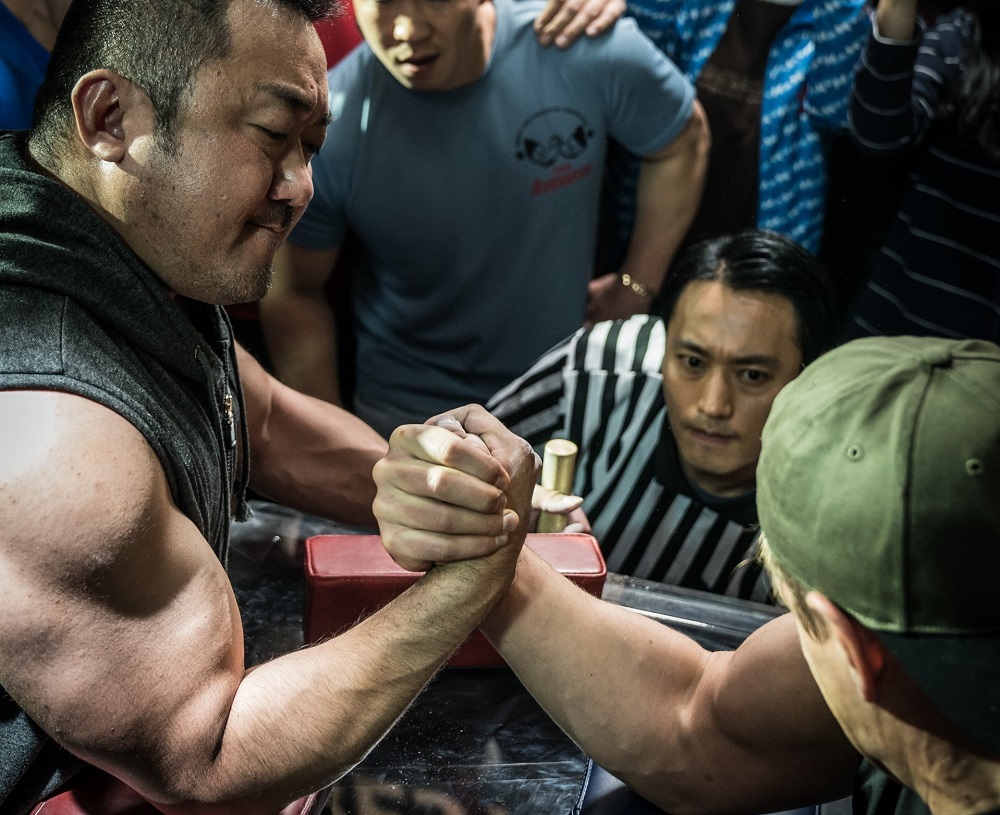 マークを演じる俳優のマ・ドンソクも、10代で韓国から米国に移住した身で、米国の大学で体育学を学んだ後、ボディビルダーやフィットネストレーナーとしての活動を始め、元UFCヘビー級王者のマーク・コールマンなどのパーソナルトレーニングを担当していたこともあるという。その後韓国に戻り、2004年に映画デビュー。最近では日本でもヒットしたゾンビ映画「新感染 ファイナル・エクスプレス」にも出演し、警察・韓国ヤクザ・中国マフィアの三つどもえの抗争を描いた「犯罪都市」では主役を演じた。現在47歳。腕回り50センチの上腕筋の闘いが繰り広げられる迫力たっぷりの試合シーンも映画の見所となっている。作品は5月に韓国で公開され、『アベンジャーズ/インフィニティ・ウォー』に次ぎ初登場第2位でスタートし、動員100万人を記録したといい、日本でも話題を呼びそうだ。