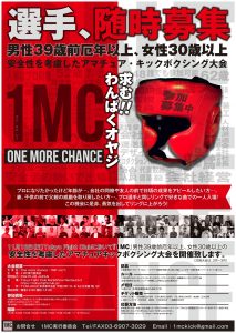 出場者募集 1MC vol.7 11.18 渋谷 Tokyo Fight Club:男性39歳以上・女性30歳以上 アマキック大会