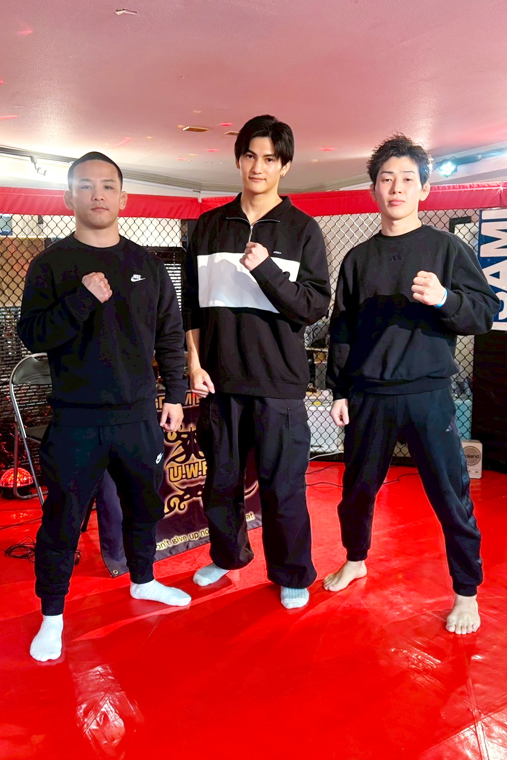キングダム恒例の入団会見には、キングダムの先輩で2025年10月の修斗で田上こゆるに勝利したばかりの史上初の修斗同時2冠王者で、現プロ修斗世界ランキング1位の新井丈や、KROSS×OVERで連勝中の森田祥平が駆け付け昇格を祝った。