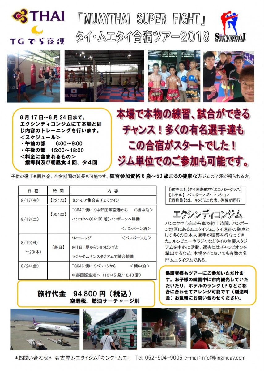 参加者募集 キング・ムエ主催 ムエタイ合宿ツアー 8.17~24 タイ・エクシンディコンジム