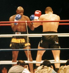 結局このグレコの最後のラッシュで左目の上をカットしたホーストは、ラウンド終了 後セコンドのストップによるTKOでこの試合を落とすことになったのだった。