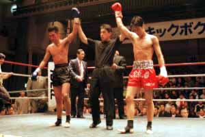 団体内の同級に敵無し、防衛戦は不可能とまで言われいたがようやく実現した。日本人との対戦自体フェザー級のタイトルを獲得した96年5月以来となる。 天才的な運動能力、甘いマスク、スター選手の条件を兼ね備えている小野寺。しかしグライガンワーン、パーサタンと2人のタイ人に苦杯を舐めさせられ、K−1フェザー級トーナメントへの出場拒否に対するペナルティとしての出場停止。と、この所明るい話題がない。3月に行われた復帰戦も文句無しの勝利だったが、実戦のカンが戻らず不満の残る内容だった。今回は単に結果だけでなく中身でも納得させる試合をしたいところだ。 挑戦者のマサルは元々ライト級の選手であり、今までトップクラスの選手との対戦もなく、しかも最近リングネームを変えたばかりと言うことも有って知名度は低い。だからこそこの試合は一気に知名度を上げる大きなチャンスだ、勿論勝てば一躍チャンピオンとなる。