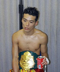 | 山本: | 例えば関、関さん、チャンピオンが試合するにしたって、3回やってて、1回1回はもう全然僕にとって意味が違うし。彼だって凄いスピードで強くなってるから、だから繋げて考えることは出来ないし。タイトルに挑戦って言う意味でも、1回1回、僕3回目なんですけど、やっと獲れて。やっと・・まあ壁が何か越えれたのかなあと、越えた証明が出来たのかなって気はするけど。言い換えたら一つ試合勝っただけてそんな変わるもんじゃないから、うちの砂田とか防衛、今日僕たまたま勝っちゃったから駄目だったけど関選手にしたって、防衛繰り返してる方が偉いと思うんですよ。だから、スタート地点に立ったってだけで、チャンピオンなんてそんな僕にしたら関係ないし。
