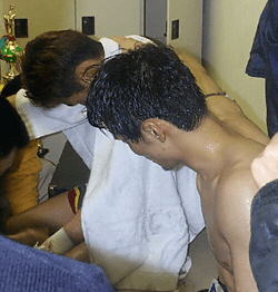 | 関: | 最初のローキックでもう呑まれちゃいましたね。ミドル蹴っても、もう蹴った気がしないんですよ。一発目のローで「もう駄目だ」とか思っちゃって。