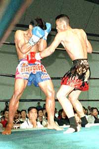 パンチで速攻の鷹山、ペットボーライはガードを上げそしてスウェーでかわしカウンターの右ストレートとミドルを決める。更にスピードのあるワンツーで攻め込むペーットボーライ。鷹山はパンチを返すが、ペットボーライはスウェーしてローとボディーストレート。