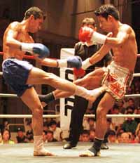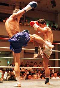 在日タイ人のソムヨット選手は、静かに入場。一方、深津選手は、力強くガッツポーズとともに華々しく入場。 ソムヨット選手が、ジャブで牽制、前蹴りで距離を取ってロー。深津選手は、ローを放って中にはいると細かくパンチ。距離が詰まると組み合うが、互いにそこからの展開はない。