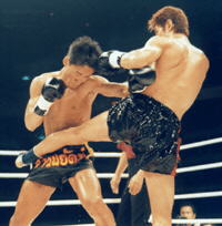 金沢はかつて全日本の中でも特に目立つ選手ではなかった、それが立嶋を飛び膝でKOし、MAの山崎道明を判定で降し急に注目を浴びるようになった。勝利その物もそうだが、派手な勝ち方がだ。この試合も「派手な技で勝」と宣言している。 対する佐久間は設立間も無いK−Uのエース、最近ムエタイ戦士のガウナーとの対戦を自らの負傷によって流してしまい、その直後となるこの大舞台での試合に気合いが入る。前日記者会見でも「1発も当てさせない」と金沢と火花を散らしていた。