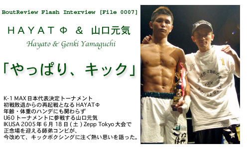 山口「HAYATΦも他の選手から『ああいう選手と戦ってみたい』『ああいう選手になりたい』と思われるような選手になればいいんですよ。HAYATΦにはK-1をあんまり意識し過ぎないで、1キックボクサーとしての完成度を高めてもらいたいですね。そうすればどこからだってお呼びがかかるじゃないですか。」