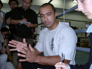 フィリォは01年12月のワールドGP決勝のハント戦以来、1年半ぶりの試合。昨年は初頭に左ヒザを手術しリハビリに励み、今年初めから練習を再開した。過去KO負けを喫したベルナルド(1998年12月・GP1回戦)、バンナ(2000年4月・大阪ドーム)へのリベンジを熱望したが、バンナの左腕の回復が不十分なため、ベルナルドにオファーがかかり、本人もすぐ了承した。ベルナルドは福岡大会に毎年出場しており、福岡での人気も抜群だという。谷川貞治・K-1イベントプロデューサーは、この試合の勝者をGP開幕戦に推薦する意向だ。フィリォは欠場中にネームバリューを上げたミルコ・クロコップやボブ・サップとの対戦にも意欲を示した。11月に行われる極真空手の世界大会は辞退し、ブラジルの後輩の優勝のバックアップをしたいという。 セフォーの相手は29日のK-1 JAPANさいたま大会で「いい試合をした選手(谷川P)」が推薦される。半月しか間隔がないため、選手のダメージも考慮されるべきだろう。セフォーは3月のさいたま大会では、食べ過ぎのため普段の試合体重より5kg以上重い110kgあった。だが今回の試合のため5週間前から来日し、トレーニングの成果で111kgあった体重が106kgまで絞れたといい、スピーディーなファイトが期待できそうだ。 イグナショフは6月のパリ大会のGP地域予選の激戦を突破したばかりだが、早くも次の試合に臨む。ノルキヤは5月のスイス大会の地域予選を欠場しており、今回が再起戦となる。 ボンヤスキーも5月のスイス大会を負傷欠場していた一人。対するゴルダン・ユキッチはクロアチアのプロモーターが「第2のミルコ」と自信を持って推薦してきた選手だ。 リードはパリ大会の地域予選では調子が出なかったが、所属ジムとのトラブルが影響でモチベーションが下がっていたためだという。対するカトゥーは同じパリの予選でアビディ相手に好勝負を繰り広げた選手で、今回はボクサー対決。互いに長所が発揮されるだろう。 他にもアーネスト・ホースト、ミルコ・クロコップの出場を予定。ただしミルコはPRIDE.26のヒーリング戦で右肘を痛めたため、その回復次第だという。(井原芳徳)