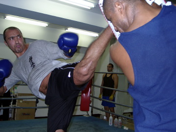 ▼ (7/7 up) メインイベントで復帰戦を行うフランシスコ・フィリォが7日、池袋のボディプラントで練習を公開した。 調整具合は上々のようで、左膝の手術をしたことを感じさせないスピーディーでトリッキーな蹴りを披露。フィリォ自身も必殺・ブラジリアンキックの技術を欠場中に磨いたことを明かし、「“一撃”は自然な形で出るもの」としながらも、マイク・ベルナルドを一撃KOしたいか?という問いには「I hope so」と笑顔で答えた。ベルナルドのパンチをブロックし、自分の攻撃を出したい考えで、それを意識したような動きも練習ではいくつか見られた。体重は復帰前より4kg増え108kgになったというが、自然な形で増量したといい、動きのキレに問題はなさそうだ。 「復帰戦の気負いはなく、リベンジはあまり意識しない」と平常心をアピールするフィリォ。「一撃」の大会のプロデュースや後輩の指導を通じ、選手とは反対の立場から試合を見る事ができ、自分にとってプラスになったという。