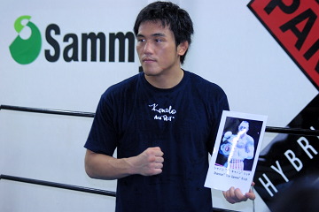 ▼ (6/10 up) 近藤有己の対戦相手が、シャノン・“ザ・キャノン”・リッチに決まった。 リッチは00年10月のPRIDE.11で桜庭和志と対戦し1分8秒アキレス腱固め敗れた選手。以降も02年7月 THE BESTでU-FILEの中村大介、03年12月スーパーブロウルで須田匡昇にも完敗している。 Sherdogのデータベースに載っている戦績だけでも27勝39敗。ほぼ月1ペース、多い時には月5回や二日連続で試合をするなど、やたら試合数が多いこと、また、勝っても負けても全て短時間一本決着なことでも知られる。昨年1年だけでもなんと15戦8勝6敗1無効試合。今年は5勝1敗と好調だが、全て無名選手が相手だ。だが03年2月にはわずか9秒でKO勝ちという記録も作っており、パンクラスの尾崎允実社長は「ストライカーで、“仮想ヴァンダレイ・シウバ”となる相手を選んだつもりです。楽な相手じゃ無いと思いますよ」と評する。 10日会見した近藤は、リッチについて「桜庭さんとやったのは見ましたけど、まだビデオを見直してません。試合が短かったんで印象は無いですね。データを見るとコンスタントに試合をしているようですけど」と語る程度。「相手どうこうとかじゃなく、前回よりグレードアップした自分を見せたい」「打撃、関節にこだわらず、パンチは1つ1つ強く、関節もキレのあるものを出したい」「シウバ戦に向けての調整という意識はない。6/22の試合を見に来てくれる人に最高のものを見せられればそれでいい」と淡々と語った。 5月のPRIDE武士道でマッチメイクされていたシウバ戦が中止になったことで、モチベーションは維持できているか?という質問には「モチベーションは無いですね。そういうものに価値を感じなくなったし、いらなくなってきましたね。モチベーションとかに関係なく、最高のものをお客さんに見せたるだけです。モチベーションが必要だとしても、維持しようとするものじゃなくて、自然と湧いてくるものだと思いますよ。気持ちが上がったり下がったりするようでは、まだ自分の感情をコントロールできてない証拠です。5月の試合が中止になったことで学びました」と哲学的なコメント。試合が無い間も、不動心は着実に磨かれているようだ。(井原芳徳)